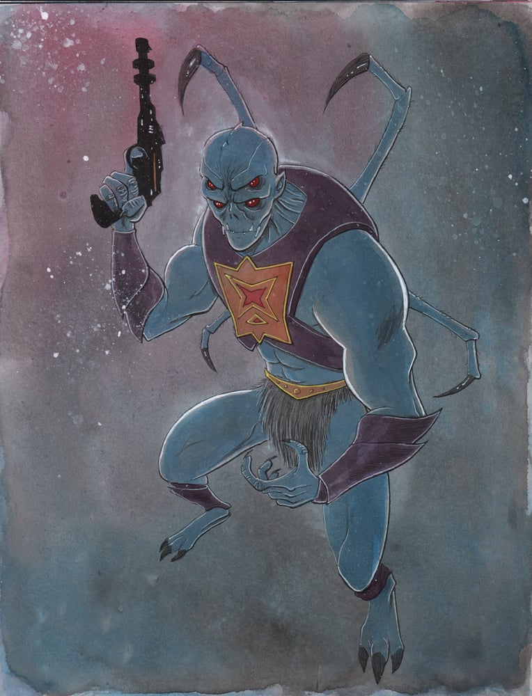 8.5x11 done in pencils, inks, acrylic inks & paint on paper.