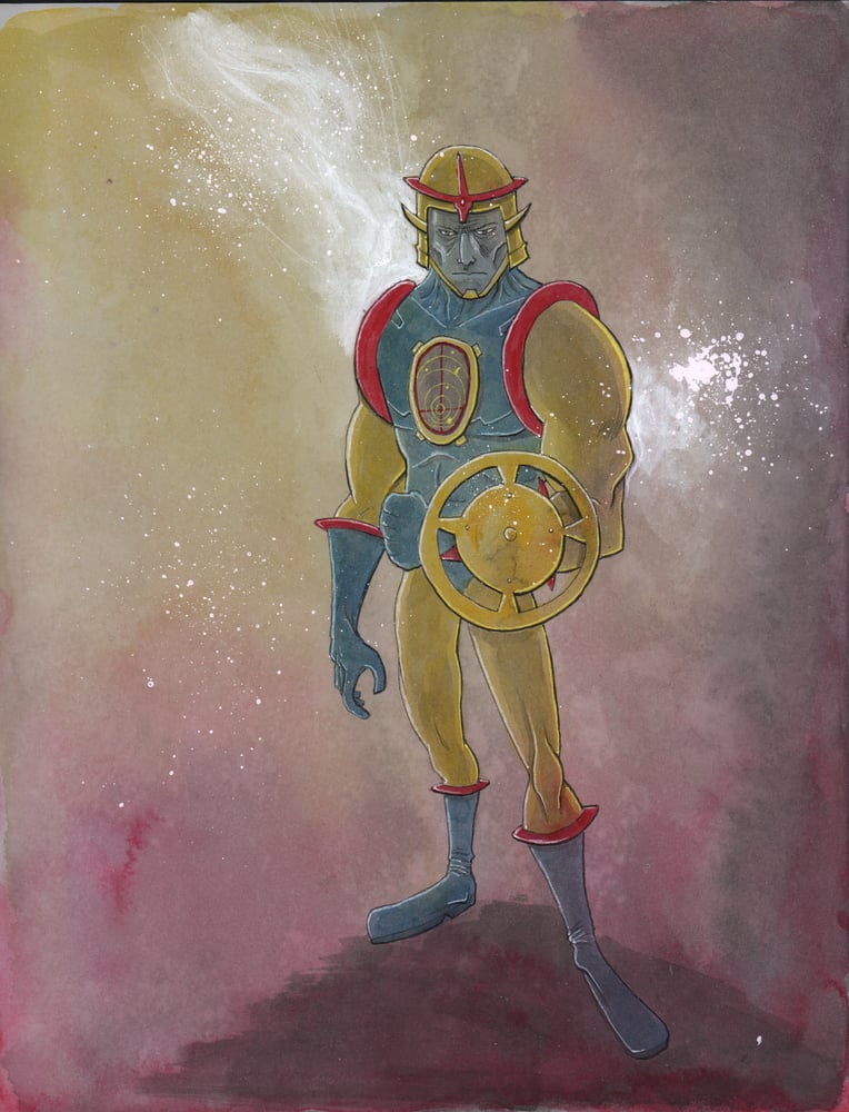 8.5x11 done in pencils, inks, acrylic inks & paint on paper.